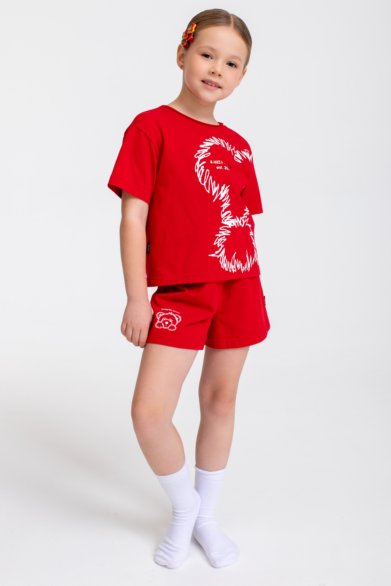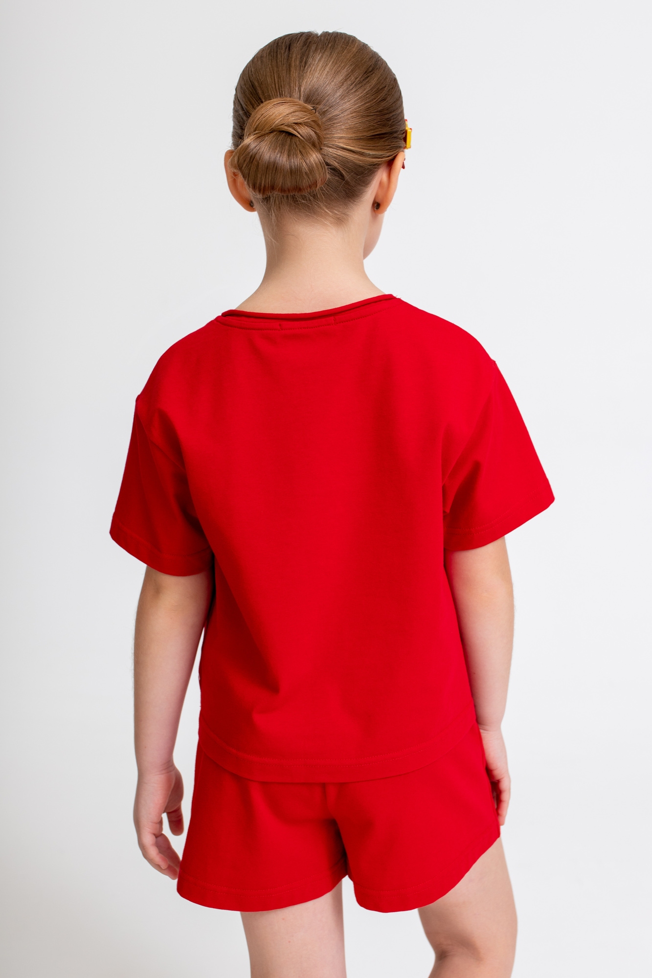 На переде футболки большой дизайнерский принт с элементами тиснения.