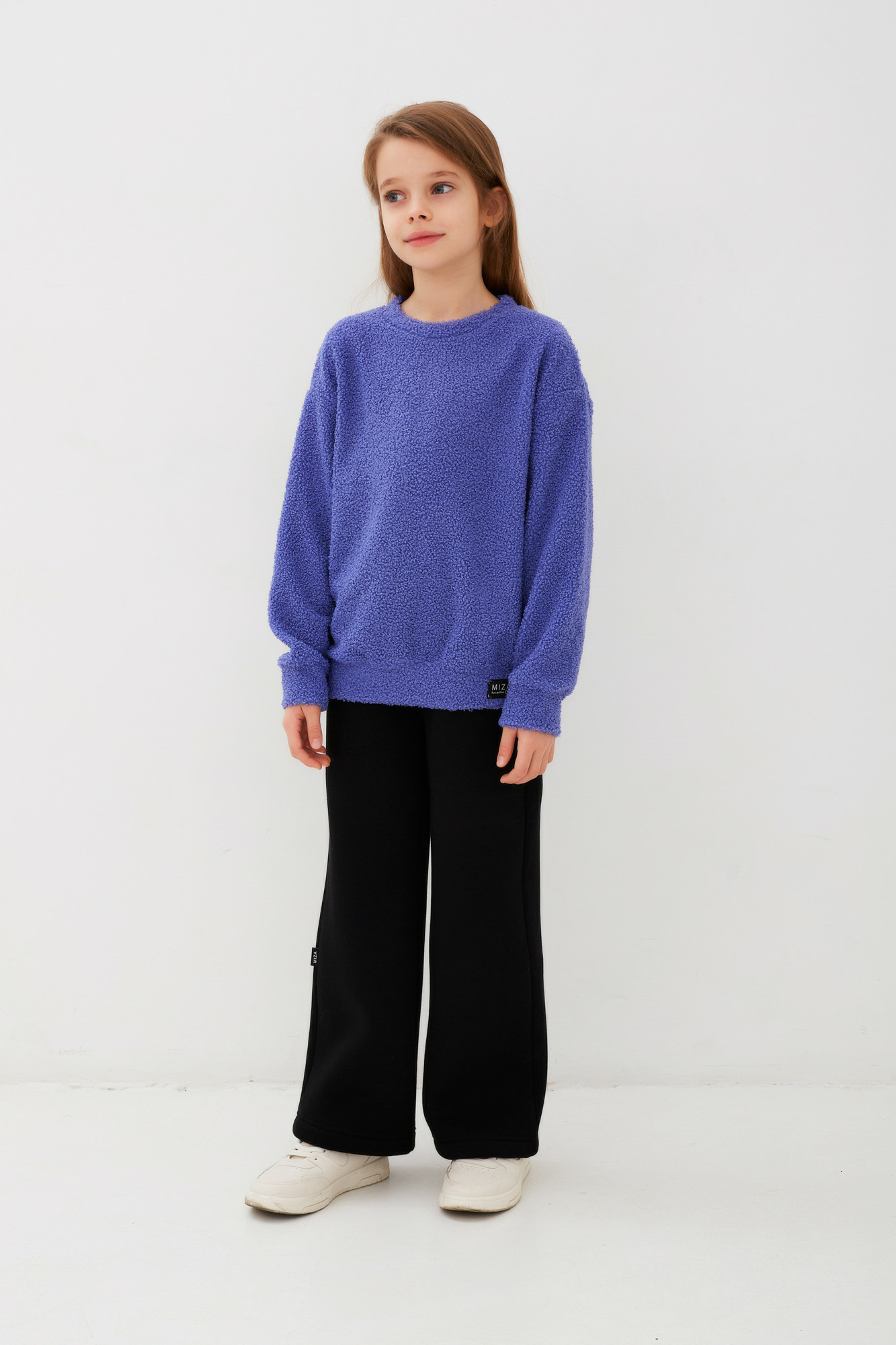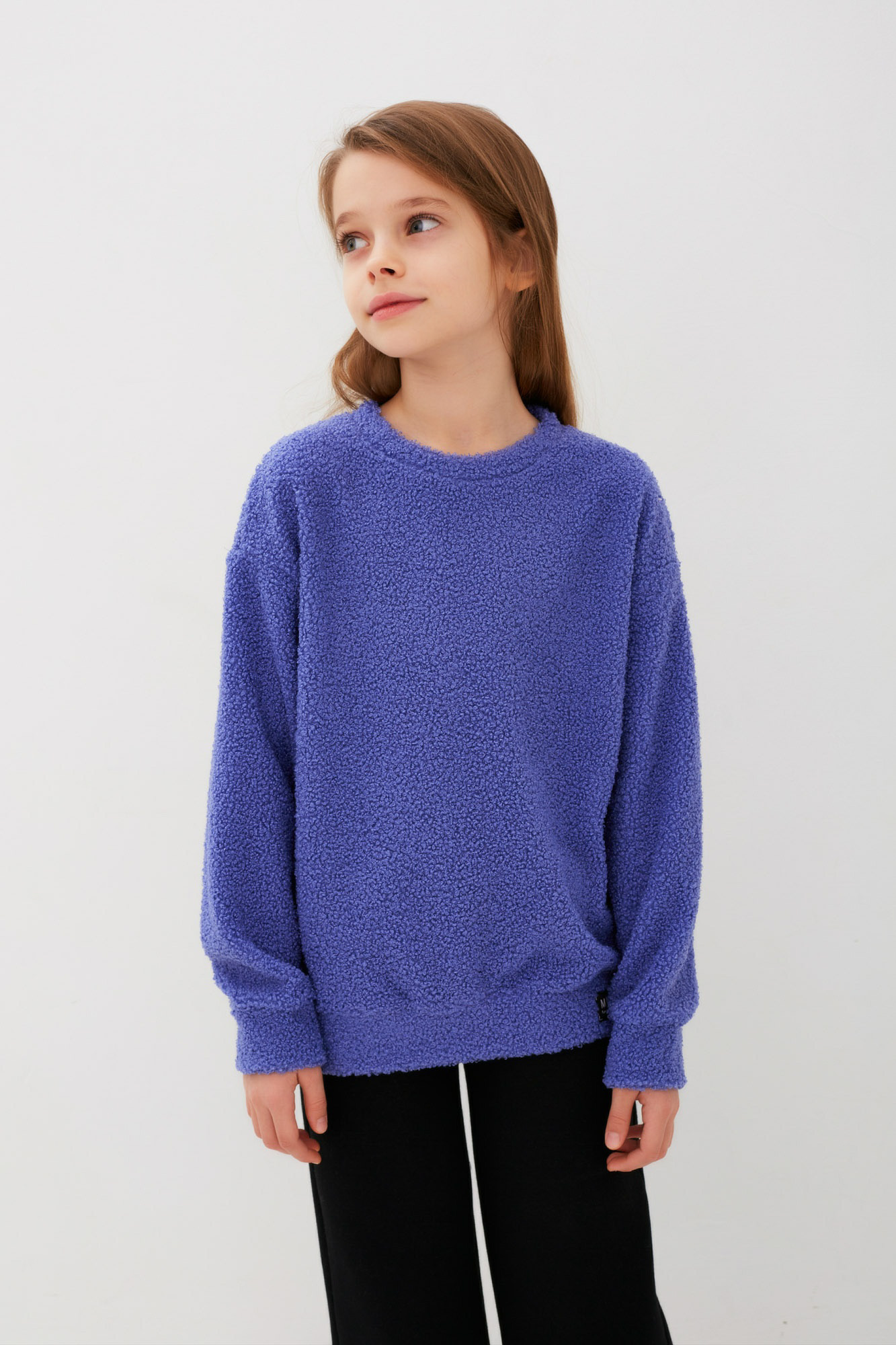 Свитшот базовой длины, чуть выше линии бедер, из уютного мягкого материала, напоминающего мех.