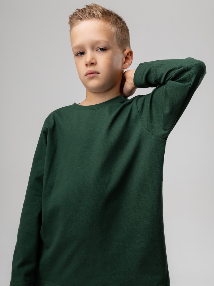 Материал кулирная гладь пике Состав 92% хлопок 8% лайкра Свитшот для детей дошкольного возраста. Свитшот свободного силуэта с втачным длинным рукавом. Горловина футболки округлой формы.