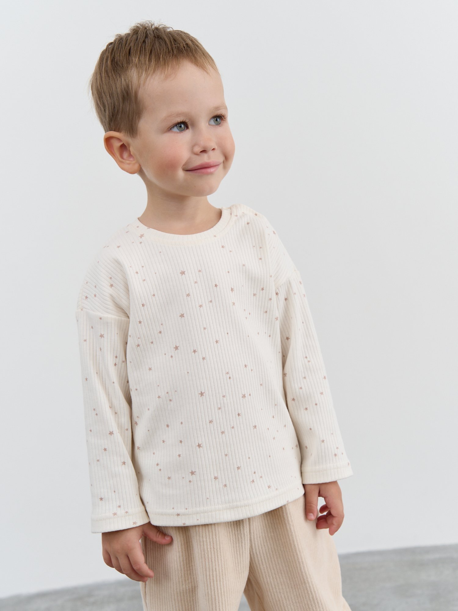 Лонгслив "Бежевые звезды" в рубчик 0+