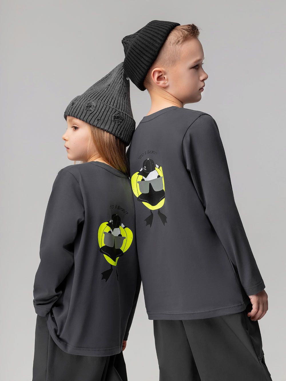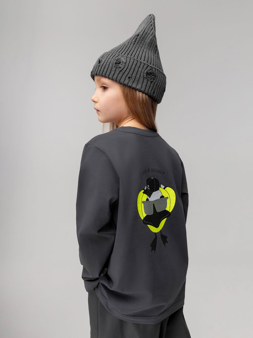 Лонгслив "Гусь" 7-289MU; темно-серый (салатовый)