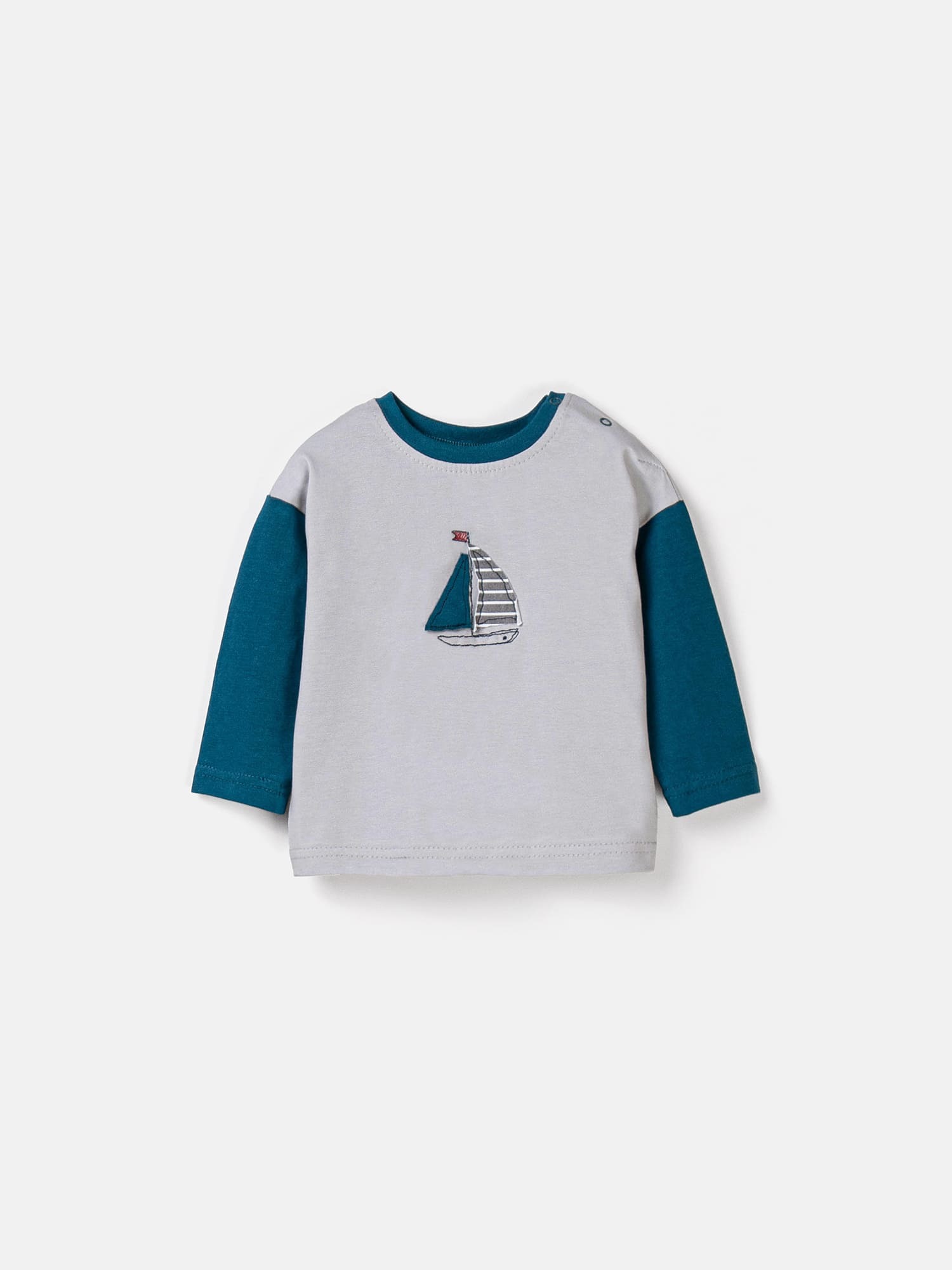 Плечевая застежка на кнопки облегчает переодевание, а мягкая бейка по горловине не натирает.