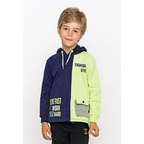 Удобная модель с капюшоном, мягкий трикотаж с тонким начесом, яркий рисунок и аппликация понравятся мальчишкам.