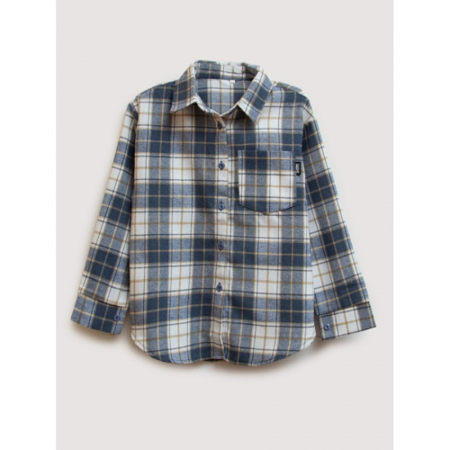 Рубашка из фланели в клетку для мальчиков и девочек. Рубашка удлиненная. Модель с длинными спущенными рукавами на манжете, на груди накладной карман. Изготовлена из натурального гипоаллергенного 100% хлопка, материал - фланель.