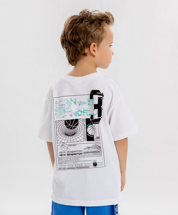 1040 р. 1300 р. Футболка оверсайз с принтом белая для мальчика Button Blue