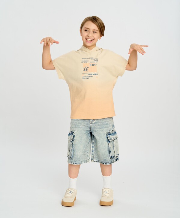 4630331026699 цветМультицвет100% хлопок Хлопок Футболка с капюшоном и коротким рукавом для мальчика мультицвет с градиентом Button Blue