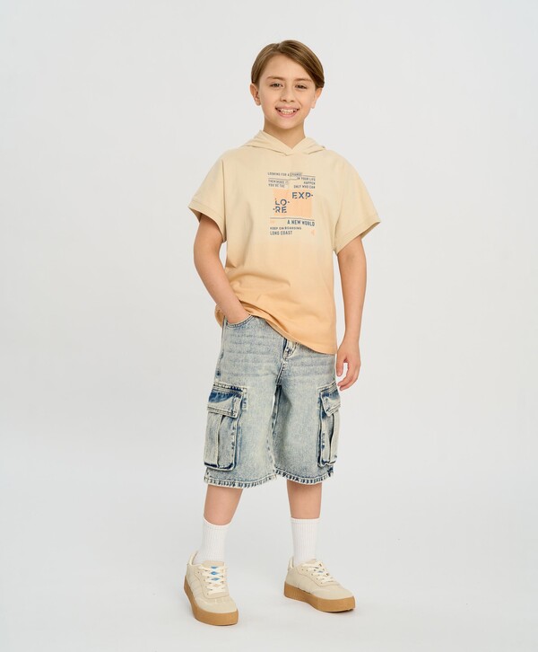 1050 р. 1500 р. Футболка с капюшоном и коротким рукавом для мальчика мультицвет с градиентом Button Blue