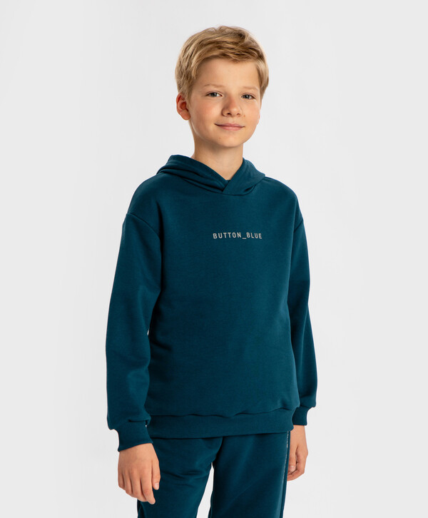 20% полиэстер цветСиний80% хлопок/20% полиэстер Хлопок Толстовка с капюшоном и принтом синяя детская Button Blue