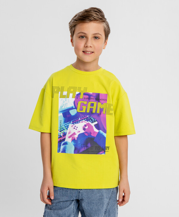 1080 р. 1350 р. Футболка с принтом салатовая для мальчика Button Blue