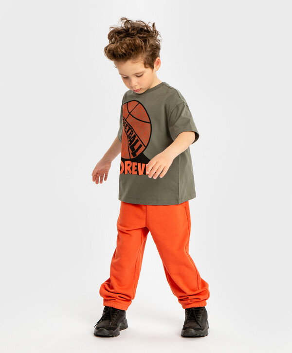 40% полиэстер цветОранжевый60% хлопок/40% полиэстер Хлопок Брюки с карманами и поясом на резинке оранжевые для мальчика Button Blue