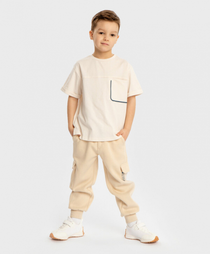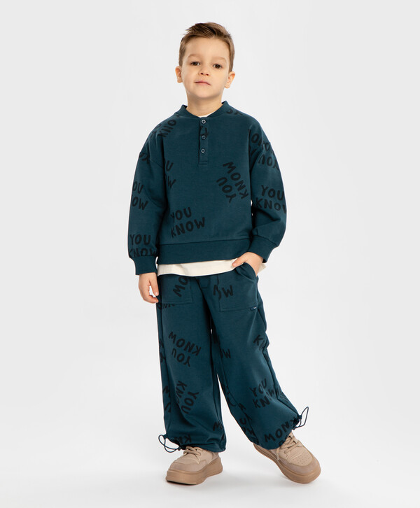 6% эластан цветСиний75% хлопок/19% полиэстер/6% эластан Хлопок Брюки спортивные с регулировкой ширины брючин и принтом синие для мальчика Button Blue