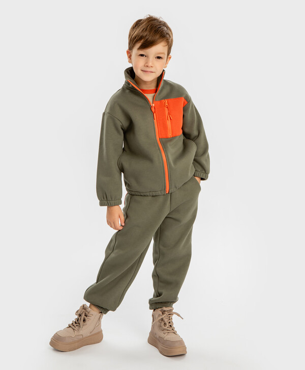 1160 р. 1450 р. Джоггеры утепленные с поясом на резинке зеленые для мальчика Button Blue