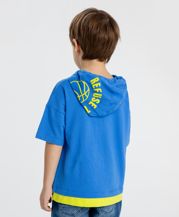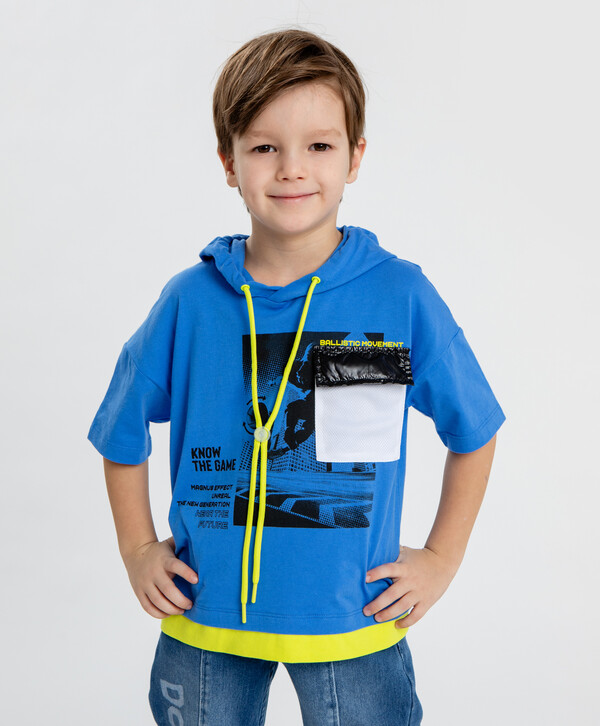 1200 р. 1500 р. Футболка с капюшоном с принтом синяя для мальчика Button Blue
