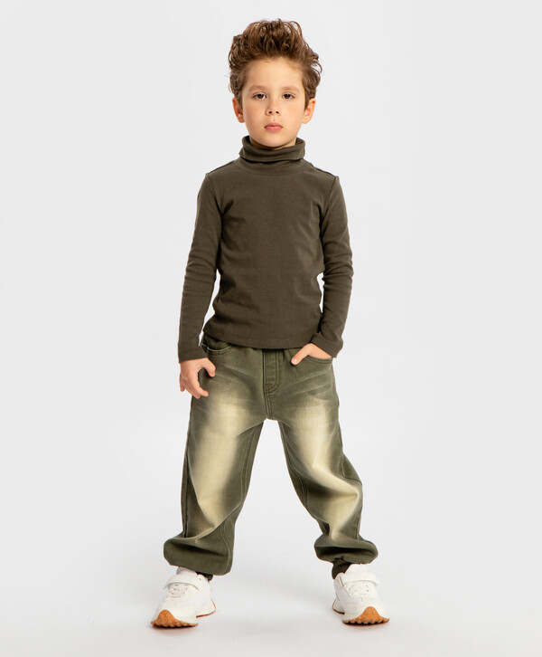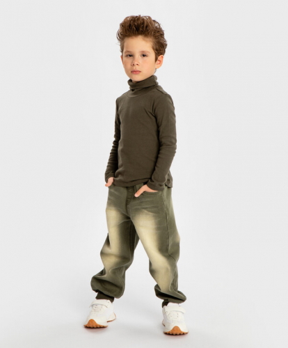 2% эластан цветЗеленый65% хлопок/33% полиэстер/2% эластан Хлопок Брюки джинсовые на резинке с потертостями зеленые для мальчика Button Blue