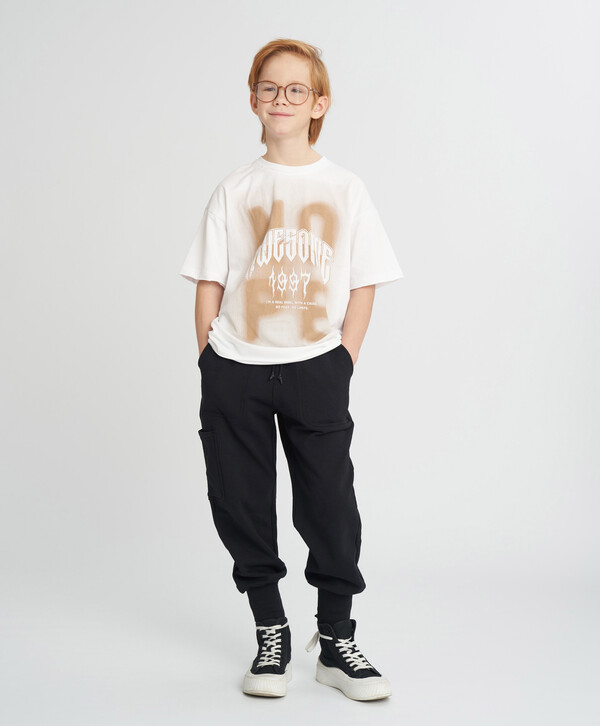 4630331021526 цветЧерный70% хлопок/30% полиэстер Хлопок Джоггеры детские черные с поясом на резинке Button Blue