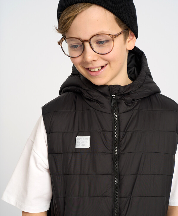 1536 р. 1919 р. Жилет детский утепленный стеганый черный с капюшоном Button Blue