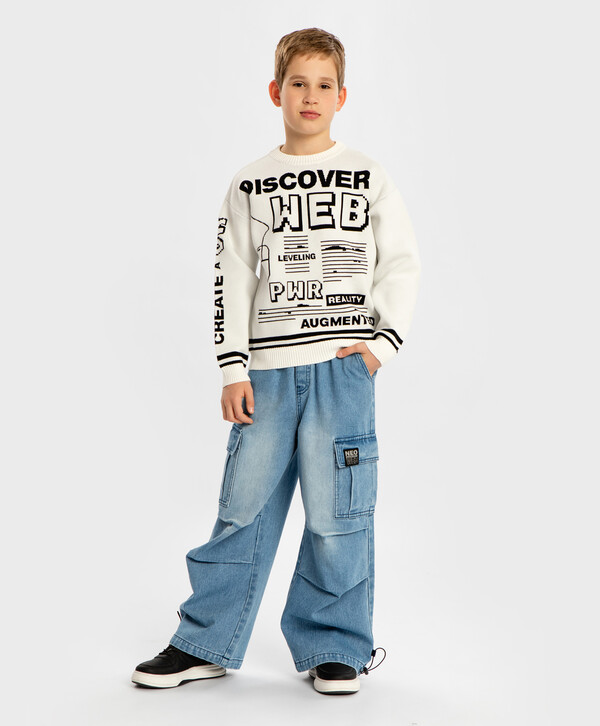 100% хлопок Широкие синие джинсы Antifit с четырьмя карманами детские сделаны из плотного денима. При этом чистый хлопок в составе делает их дышащими и комфортными для ежедневной носки. Пояс на резинке с завязками с изнанки обеспечивает идеальную посадку. Мальчикам и девочкам с любым типом фигуры будет удобно в таком изделии. Есть имитация ширинки и четыре кармана - два прорезных и два накладных с клапаном. В них легко поместятся все важные мелочи. Модель Antifit нравится детям. Это очень широкие джинсы. Но в нашем изделии есть резинки со стопперами по низу брючин для регулировки ширины. Выглядят они так, будто на несколько размеров превышают параметры фигуры. От этого антифиты смотрятся приспущенными, спадающими. Джинсы декорированы защипами на коленях, потертостями и патчем. Следуйте рекомендациям по уходу, указанным на вшивной этикетке. От 8 лет До 15 лет