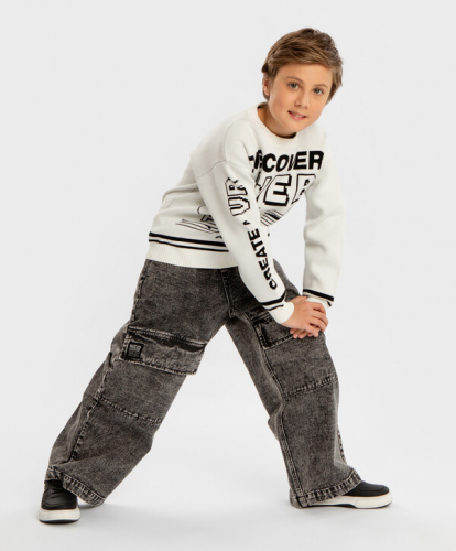 1% эластан цветСерый77% хлопок/22% полиэстер/1% эластан Хлопок Джинсы багги варенки с внешними швами серые детские Button Blue