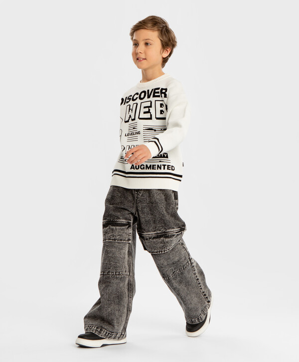 1680 р. 2100 р. Джинсы трубы Baggy с огромными карманами на коленях серые детские Button Blue