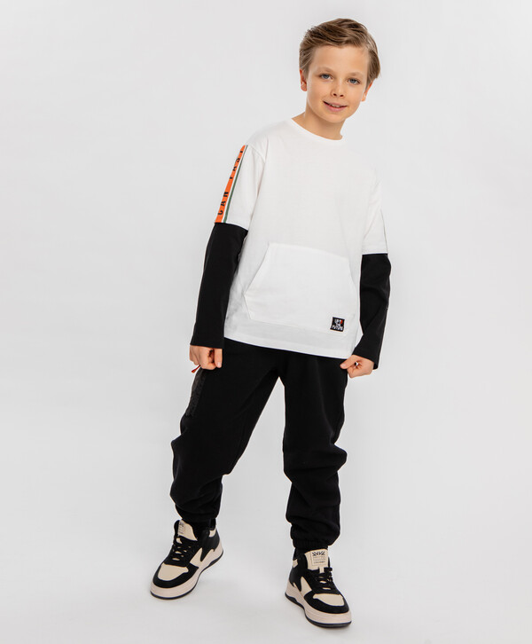 100% хлопок цветЧерный100% хлопок Полиэстер Джоггеры-карго с поясом на резинке чёрные для мальчика Button Blue
