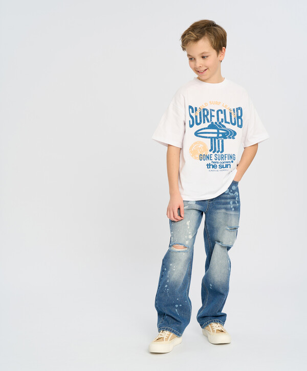1750 р. 2500 р. Джинсы мом прямые детские синие с потертостями Button Blue