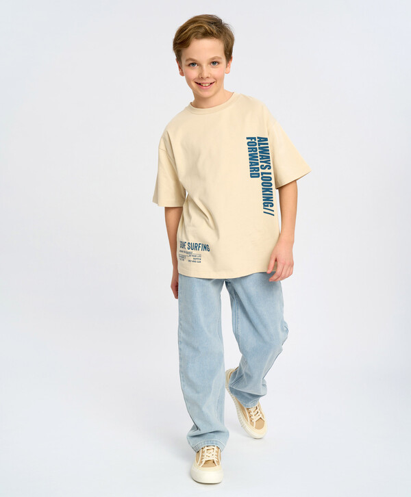 Джинсы трубы для мальчика и девочки комфортные и подойдут для любой фигуры. Джинсовые брюки выполнены из хлопка, поэтому дышащие, но прочные. Модель застегивается на пуговицу и молнию, есть тесьма на пуговке для утяжки с изнанки. Имеются шлевки, чтобы дополнить образ ремнем. Голубые широкие джинсы не просто удобные и не сковывают, но и универсальные. Благодаря отсутствию декора и принтов модель легко вписать в любой образ и стиль. Джинсы для подростка сделаны с двумя карманами спереди и сзади.