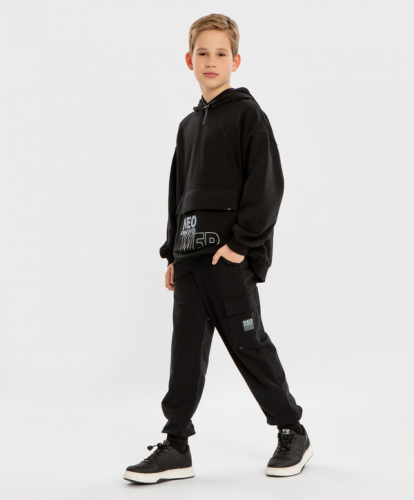 1840 р. 2300 р. Джоггеры карго с тремя карманами и поясом на резинке черные для мальчика Button Blue