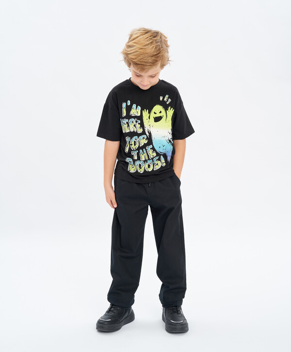 2% эластан цветЧерный98% хлопок/2% эластан Хлопок Джоггеры чёрные для мальчика Button Blue