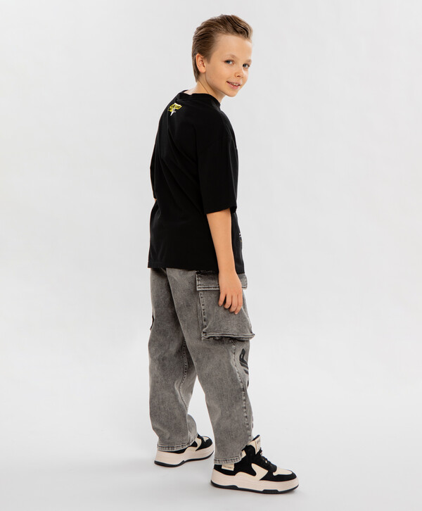 2% эластан цветСерый75% хлопок/23% полиэстер/2% эластан Хлопок Джинсы-карго relaxed fit серые для мальчика Button Blue