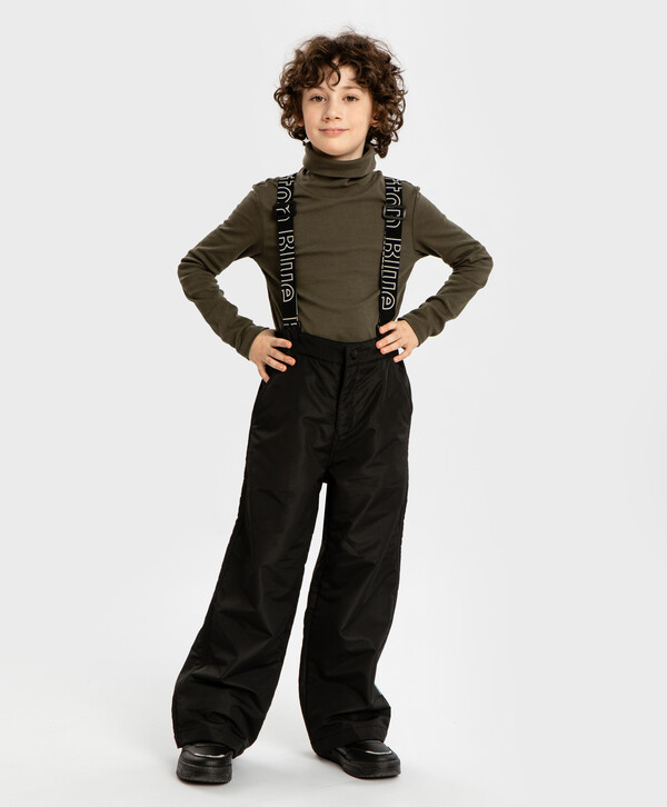 100% полиэстер цветЧерныйверх:100% полиэстер; подкладка:100% полиэстер До -5°С Полиэстер Брюки утепленные демисезонные со съемными бретелями черные детские Button BlueПодкладка - флис/ без утеплителя