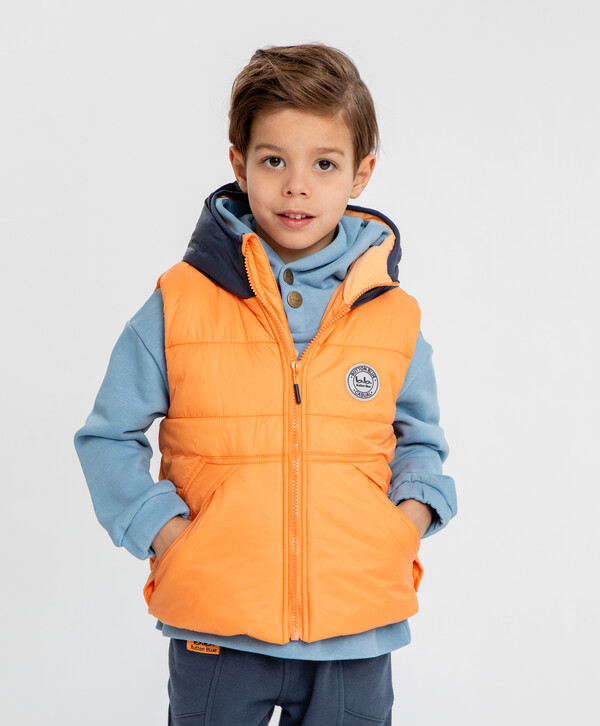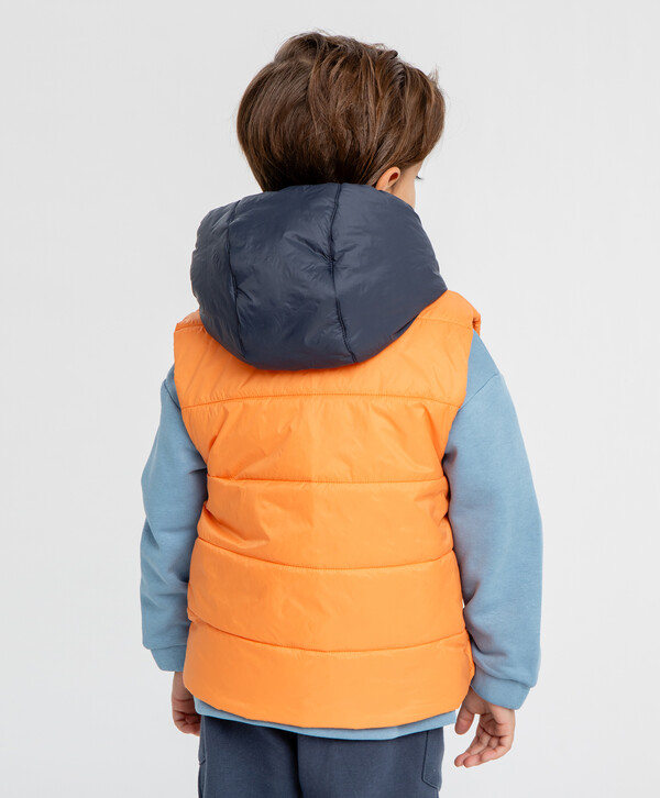 2080 р. 2600 р. Жилет утепленный с капюшоном стёганный оранжевый для мальчика Button Blue