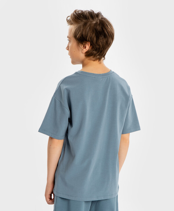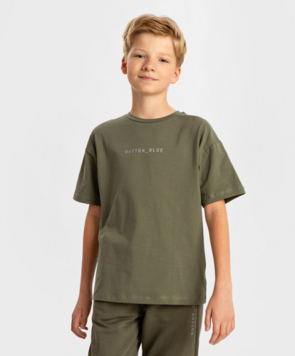 5% эластан цветСиний95% хлопок/5% эластан Хлопок Футболка базовая с коротким рукавом и принтом синяя детская Button Blue