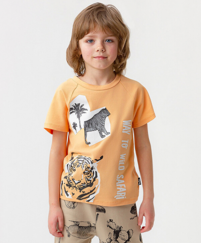 600 р. 750 р. Футболка из хлопка с принтом салатовая для мальчика Button Blue