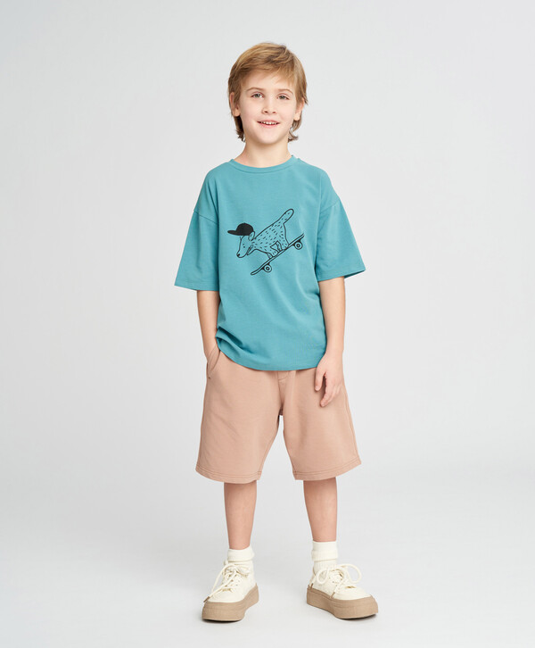 665 р. 950 р. Футболка с коротким рукавом для мальчика оверсайз бирюзовая с принтом Button Blue