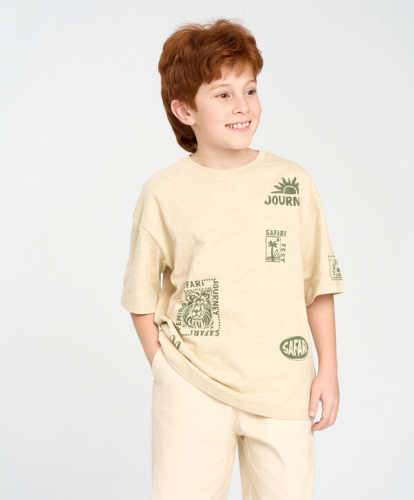 700 р. 1000 р. Футболка с коротким рукавом для мальчика оверсайз желтая с принтом Button Blue