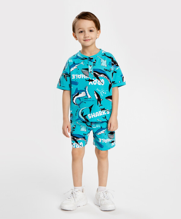 5% эластан цветГолубой95% хлопок/5% эластан Хлопок Шорты с принтом голубые для мальчика Button Blue