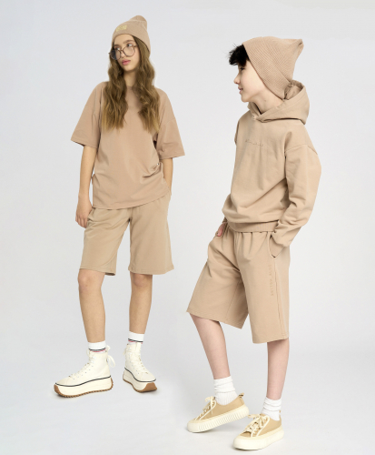 Базовые шорты для мальчика и девочки универсальные – подойдут любому ребенку с любой фигурой. Модель износостойкая - выполнена из петельчатого футера. Смесовый материал с хлопком в основе делает детские шорты гладкими, приятными и дышащими. Пояс на резинке с завязками обеспечит идеальную посадку, как и прямой крой. Имеются два кармана. Длина шортиков - по колено. Синие шорты в глубоком оттенке риф-брейк идеально впишутся в образы для прогулок, путешествий и дома. Модель однотонная, с неброским прорезиненным брендингом.