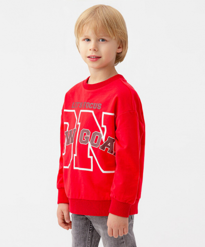 Красный свитшот для мальчика с округлой горловиной согреет ребенка в межсезонье и подарит заряд хорошего настроения благодаря стильному принту. Уютная модель из футера имеет гладкую лицевую сторону и петельчатую изнанку без начеса. Мягкая хлопковая ткань с небольшим количеством эластана в составе приятна на ощупь, проста в уходе и обеспечивает оптимальную терморегуляцию, что особенно важно при активных движениях. Прямой крой изделия со спущенной линией плеча способствует свободной посадке. Низ изделия, горловина и манжеты выполнены из эластичного рибового материала, который мягко прилегает к телу. Крупный текстовый принт на полочке кофты сделает любой образ стильным и запоминающимся. Свитшот оптимально сочетается с джоггерами, джинсами и брюками из капсульной коллекции Button Blue. Модель длиной до бедра представлена в размерах от 98 до 128.