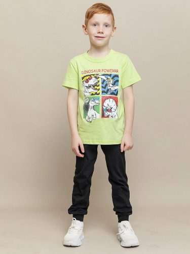 Футболка с коротким рукавом для мальчика в черной расцветке с принтом в виде динозавров. Повседневная детская футболка для детей от 2 до 8 лет идеально подходит для похода в садик, школу, для занятий физкультурой и спорта, а также в качестве универсальной домашней или пляжной одежды. Футболка для мальчиков изготовлена из натурального хлопка, обеспечивает комфорт и удобство.