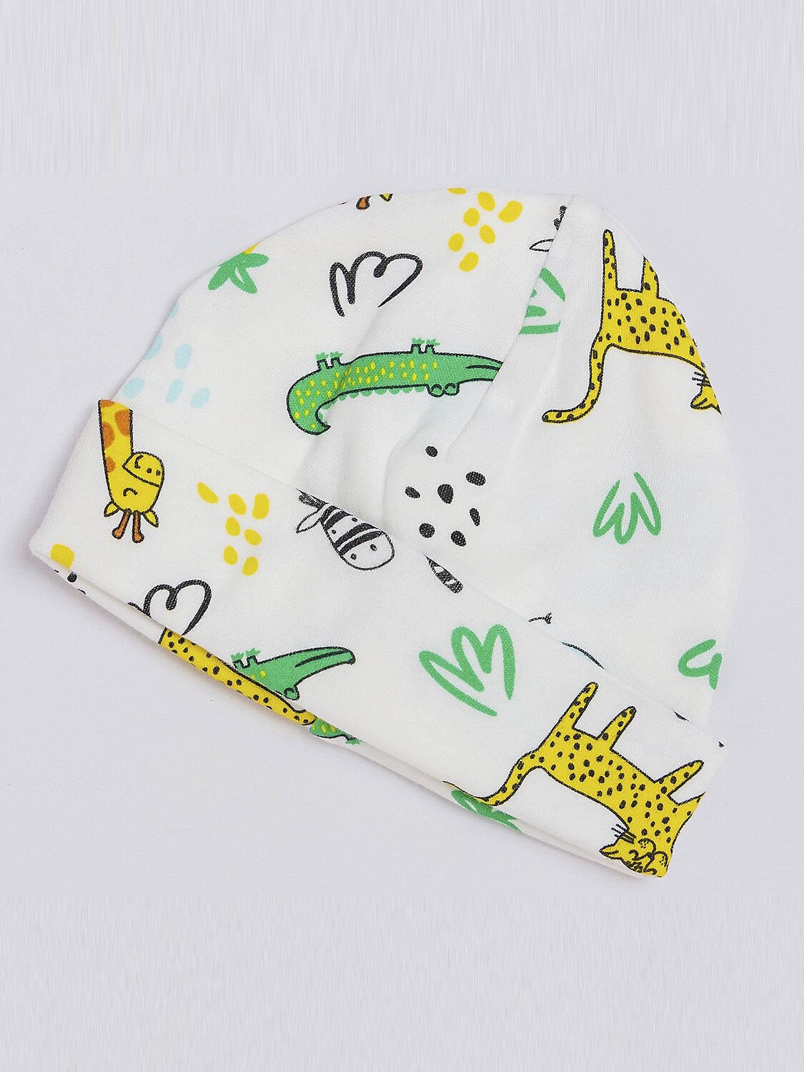 Трикотажная шапочка для новорожденного из натурального хлопка не даст голове малыша вспотеть. Материал отлично тянется, а форма шапочки отлично защищает голову от ветра. Подойдет на возраст от 0 до 9 месяцев. Украшена ярким и красивым принтом.