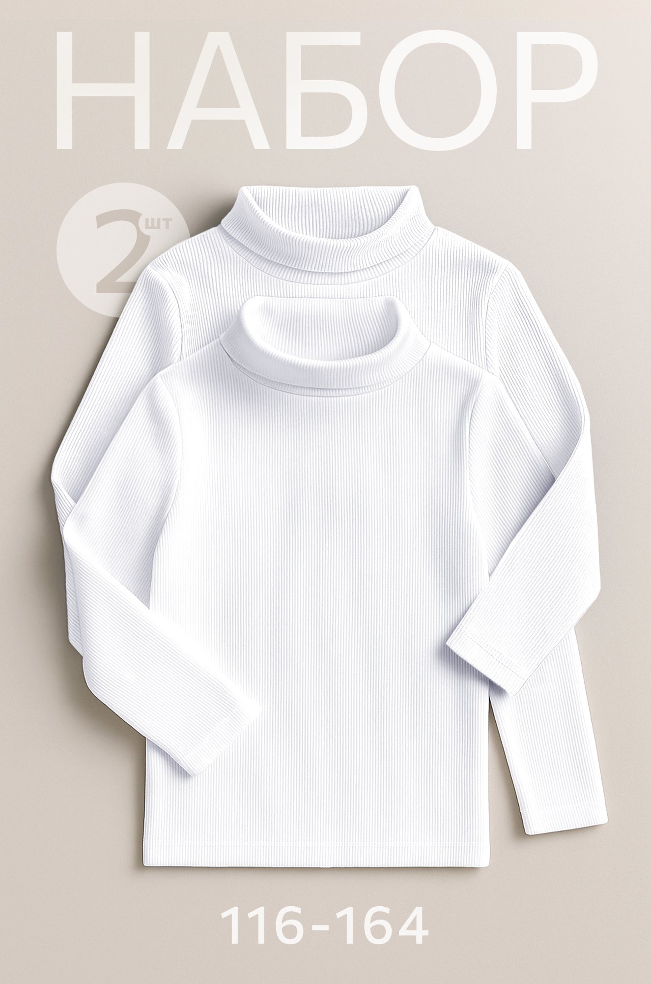 Набор однотонных водолазок в рубчик для детей и подростков выполнен из хлопкового трикотажа лапша. В комплекте 2 шт.
