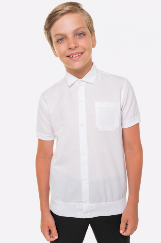Классические рубашки всегда в тренде! ..показатьБелая детская рубашка для мальчиков и подростков выполнена из хлопковой ткани. Однотонная школьная рубашка не стесняет движений благодаря свободному крою.