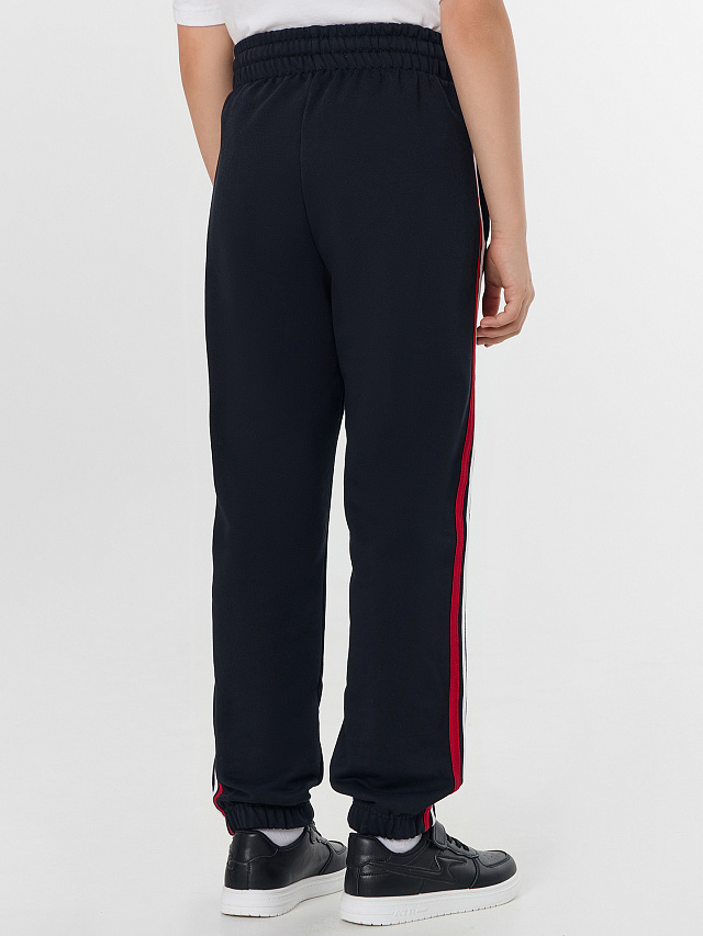Нижние срезы обработаны в подгибку с эластичной тесьмой внутри 30RV. По бокам настрочены лампасы.