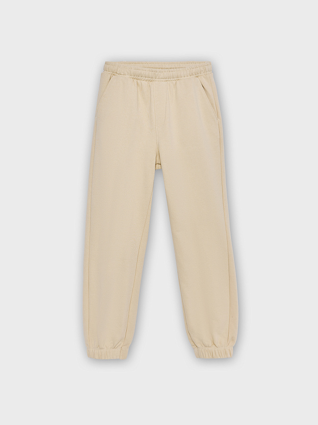Брюки-джоггеры для мальчиков. Пояс отрезной с втачной эластичной тесьмой, внутри шнур. Пояс прострочен двумя отделочными строчками. По переду обработаны карманы с отрезным бочком. Низ брюк застрочен с эластичной тесьмой на двухигольной плоскошовной машине.