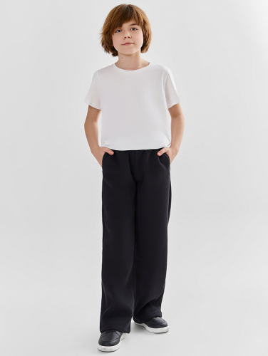 Брюки для мальчиков прямого силуэта — это удобная и практичная модель, подходящая для повседневной носки в прохладное время года. Изделие выполнено из футера с подчесом, мягкого и теплого материала, который обеспечивает комфорт и сохраняет тепло. Эластичный пояс обеспечивает надежную посадку, не сдавливая живот, а декоративная двойная отделочная строчка придает аккуратный и законченный вид. Боковые карманы, расположенные в швах, добавляют функциональности, оставаясь при этом незаметными. Низ брюк обработан швом в подгибку, что делает изделие долговечным и аккуратным. Такая модель легко сочетается с футболками, худи и свитшотами, становясь универсальной частью детского гардероба.