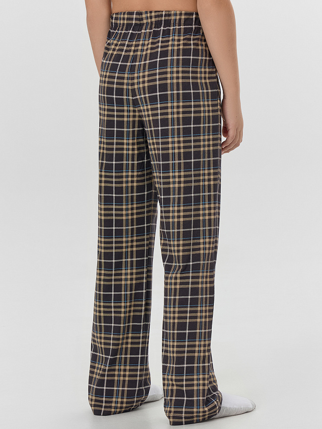 Брюки домашние для мальчиков, длинные и прямые. Детали переда и сидения соеденены боковым швом. Пояс цельнокроеный с эластичной тесьмой внутри (внутрення резина Rv30), ширина 30 мм.