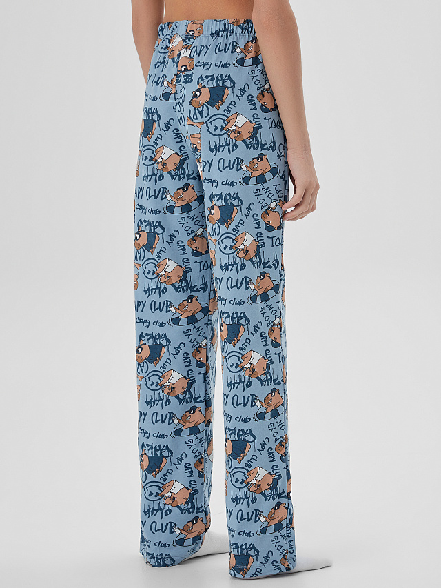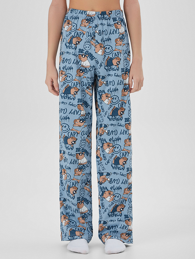 Брюки домашние для мальчиков, длинные и прямые. Детали переда и сидения соеденены боковым швом. Пояс цельнокроеный с эластичной тесьмой внутри (внутрення резина Rv30), ширина 30 мм.