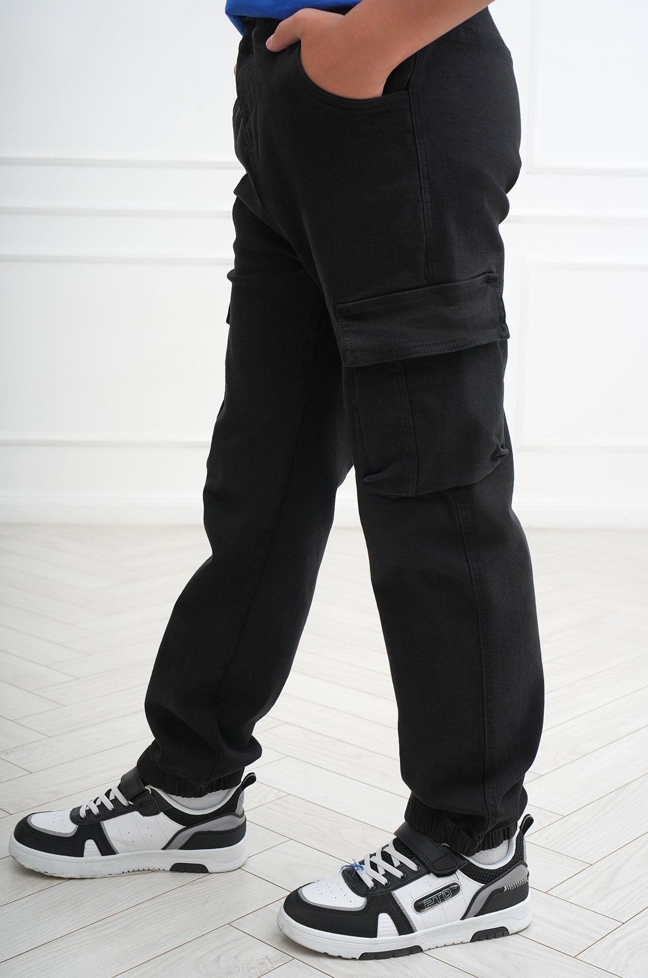 Тренды подростковой моды! Стильные брюки джоггеры для мальчиков и подростков выполнены из ткани габардин. Практичные брюки с большими накладными карманами идеальны на каждый день. Подростковые брюки карго свободного кроя, эластичный пояс регулируется шнурком, низ штанин собран на резинку.