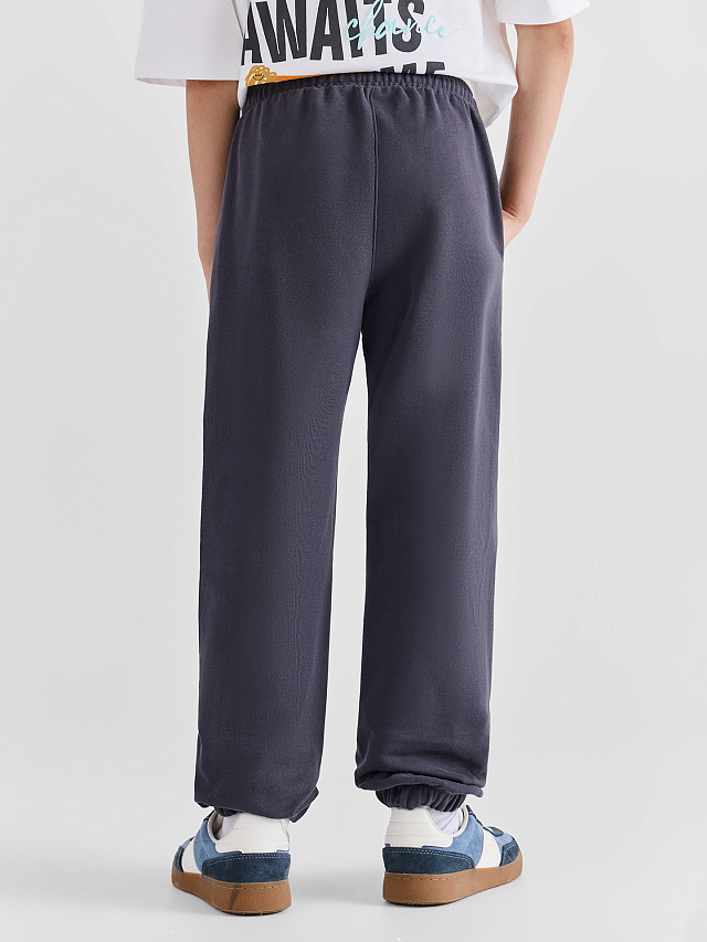 Серые брюки-джоггеры для мальчика — удобная модель для прогулок, школы и активного отдыха. Мягкий трикотажный крой не сковывает движений, при этом брюки аккуратно сидят благодаря манжетам по низу и эластичному поясу.
