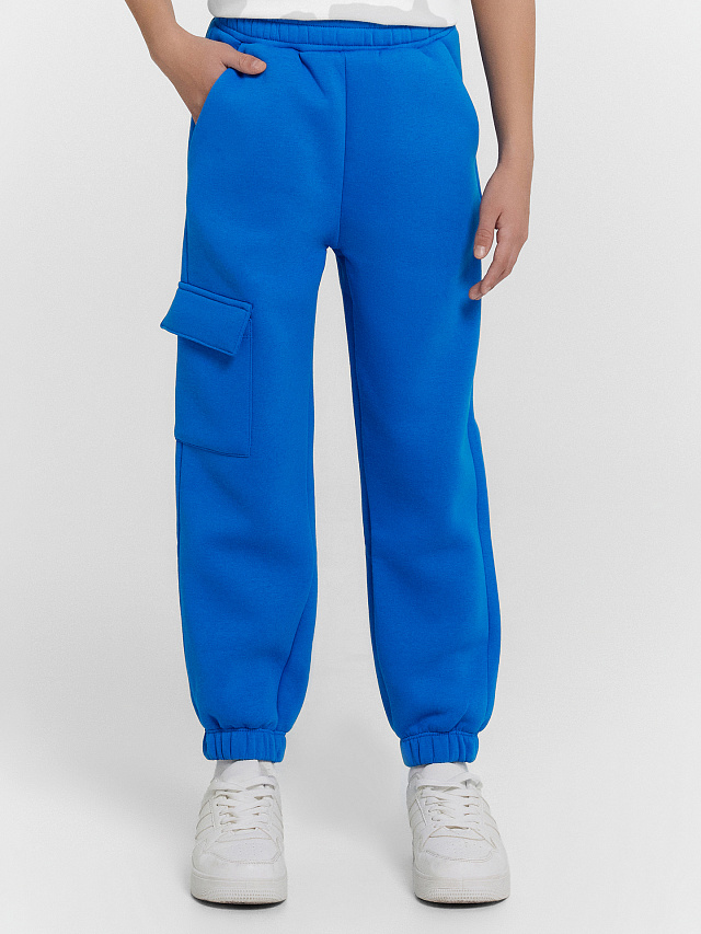Актуальные брюки-джоггеры для мальчиков. Выполнены из трикотажного футера с теплым и нежным подчесом. Посадка на талии классическая. Пояс с эластичной тесьмой внутри и регулировочным шнуром-завязкой. На правой штанине – накладной карман с клапаном, есть боковые карманы. Штанины завершаются манжетами с эластичной тесьмой.